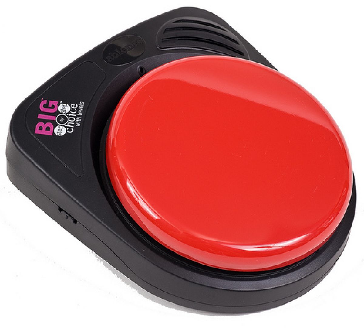 De BIG Step-by-Step Choice with Levels is één grote schakelaar voor meerdere spraakboodschappen, met keuzefunctie. Hij wordt geleverd met verwisselbare kapjes in de kleuren rood, geel, groen en blauw. Daarnaast wordt een doorzichtig kapje meegeleverd, dat op het gekleurde kapje kan worden geplaatst, met een symbool of pictogram eronder.