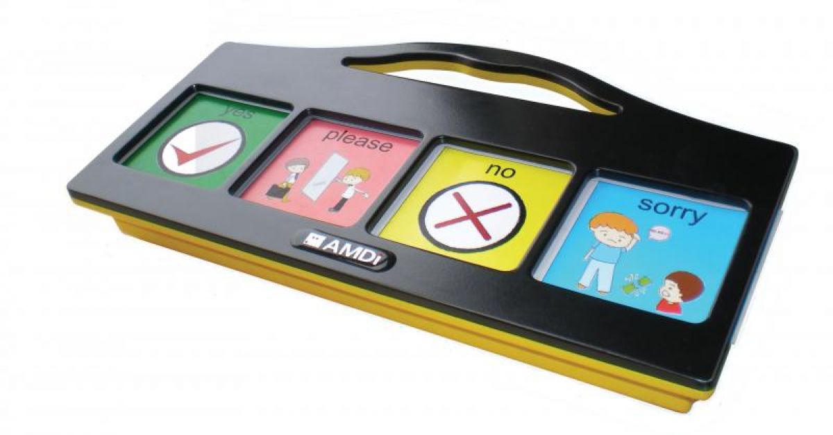 De Partner/Plus 4 is een lichtgewicht communicatiehulpmiddel met vier spraakboodschappen en vier grote knoppen. De Partner/Plus Stepper wordt geleverd samen met de software Tech/Overlay Designer en de gratis Tech/Syms symbolen voor het maken van symboolkaarten.