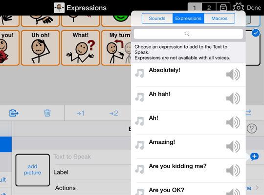 Vocabulaire en instellingen kunnen ook worden aangepast voor gebruik in de klas of tijdens therapie. De Proloquo2Go communicatie-app werkt ook met spraakuitvoer, de gebruiker kan meer dan 60 stemmen gratis downloaden (kinderen en volwassenen, Nederlands, Vlaams, Engels, Frans en Spaans). Berichten kunnen worden gedeeld via mail, iMessage, Twitter, Facebook en copy/paste in andere apps.