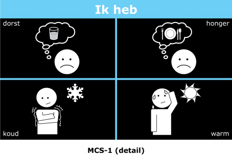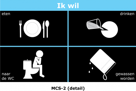 Het Aanwijsbord (MCA, tweezijdig bord) met woorden en afbeeldingen is bedoeld voor mensen die niet of slecht verstaanbaar kunnen spreken, maar voldoende tekstbegrip en handfunctie hebben om zelf de onderwerpen op het bord aan te kunnen wijzen.