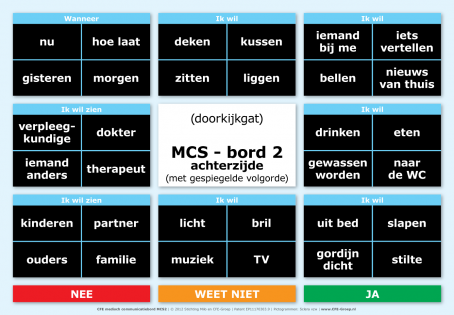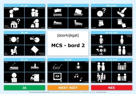 De Woordenborden (MCW, set van twee borden) met woorden en begrippen kunnen worden gebruikt voor mensen die niet of slecht verstaanbaar spreken, voldoende tekstbegrip hebben en het woordbeeld herkennen of op woordniveau kunnen lezen, maar die onvoldoende of geen handfunctie hebben om gericht te kunnen aanwijzen. Denk bijvoorbeeld aan mensen die op de intensive of medium care liggen, geïntubeerd zijn of aan het infuus liggen. De borden zijn ook inzetbaar bij gesprekken met mensen die tijdelijk hun stem niet mogen of kunnen gebruiken, bijvoorbeeld na een operatieve ingreep aan de stembanden.