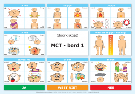 CFE medische communicatieborden zijn ontwikkeld als hulpmiddel om de communicatie in stand te houden en te bevorderen met mensen die niet of moeilijk kunnen praten, bijvoorbeeld in het ziekenhuis na een operatie, of door een ziekte of een beperking. De borden helpen bij gesprekken, onder meer over pijn en pijnbeleving, emoties, medische onderwerpen, zorg, verzorging en contact.