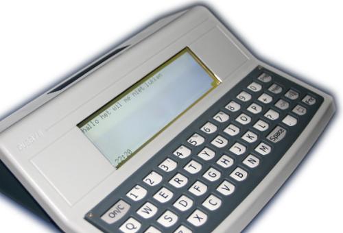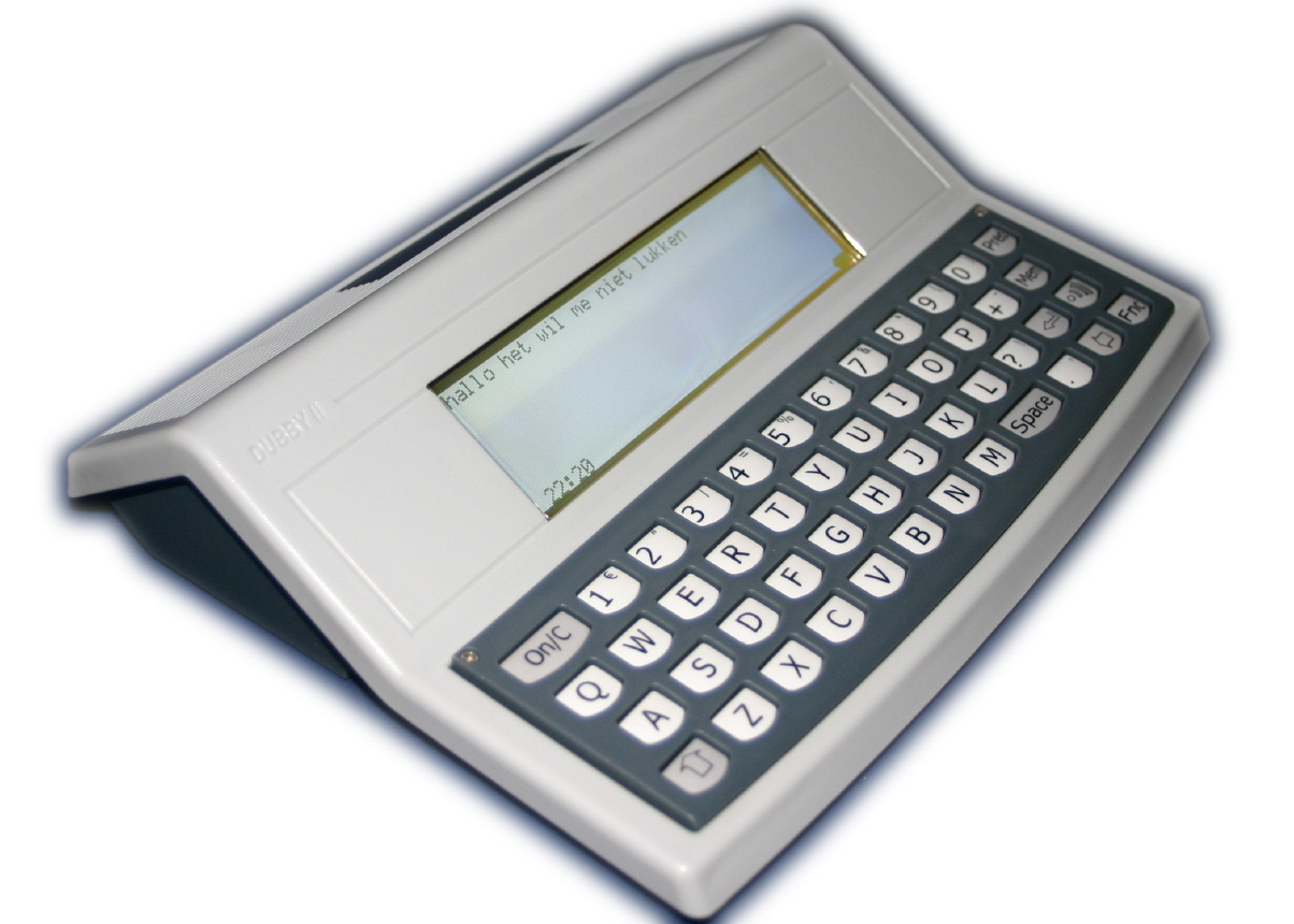 De Dubby 2 is een tekst-gebaseerd communicatiehulpmiddel met een toetsenbord en een dubbel display.