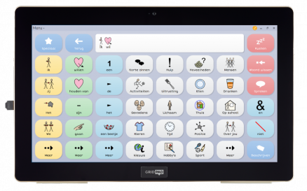 De ComUnic Go en ComUnic Pro zijn draagbare, dynamische communicatiecomputer met aanraakscherm waarop het programma The Grid 2 draait.