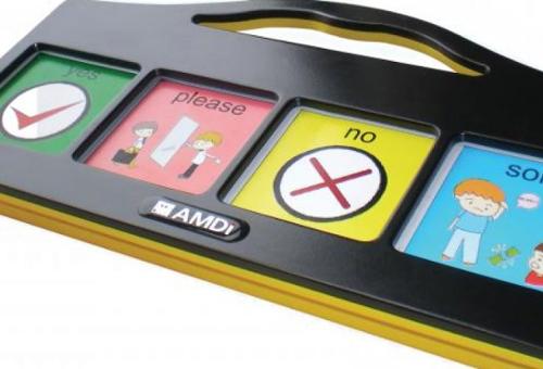 De Partner/Plus 4 is een lichtgewicht communicatiehulpmiddel met vier spraakboodschappen en vier grote knoppen. De Partner/Plus Stepper wordt geleverd samen met de software Tech/Overlay Designer en de gratis Tech/Syms symbolen voor het maken van symboolkaarten.