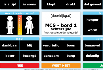 Het Aanwijsbord (MCA, tweezijdig bord) met woorden en afbeeldingen is bedoeld voor mensen die niet of slecht verstaanbaar kunnen spreken, maar voldoende tekstbegrip en handfunctie hebben om zelf de onderwerpen op het bord aan te kunnen wijzen.